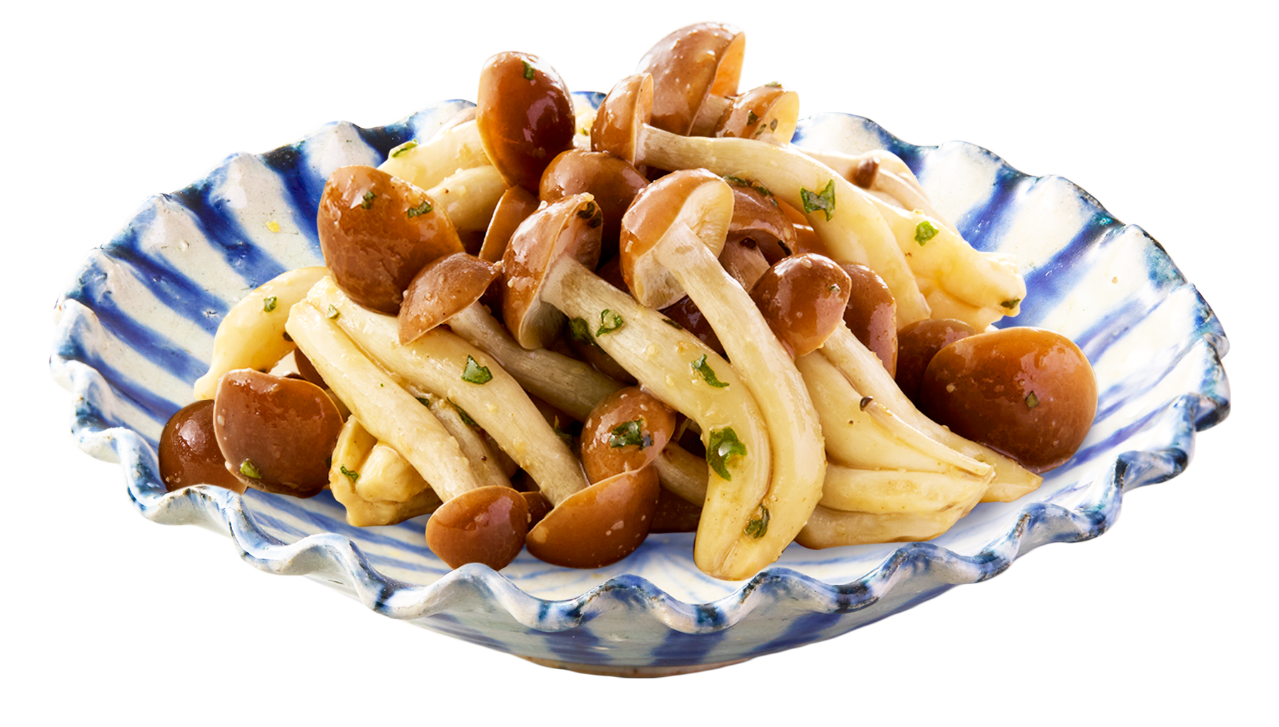 醤油ベースの和の味わいに、清涼感あるバジルの香りが絶妙にマッチしています。電子レンジで加熱したきのこと和えるだけで完成です。