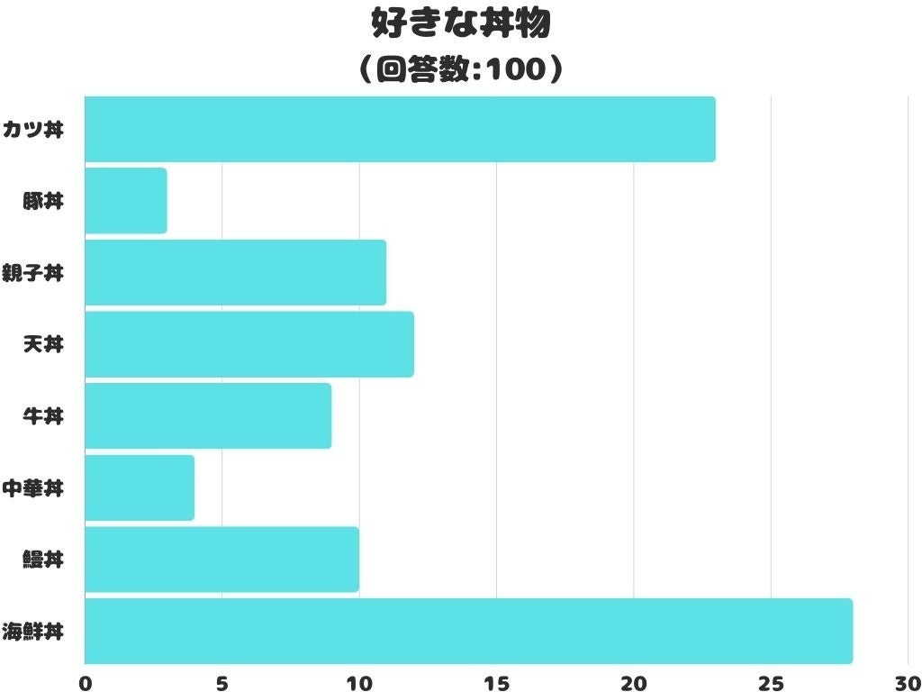 100人にアンケートを行ったところ、「海鮮丼」と回答したのは全体の28.0%でした。