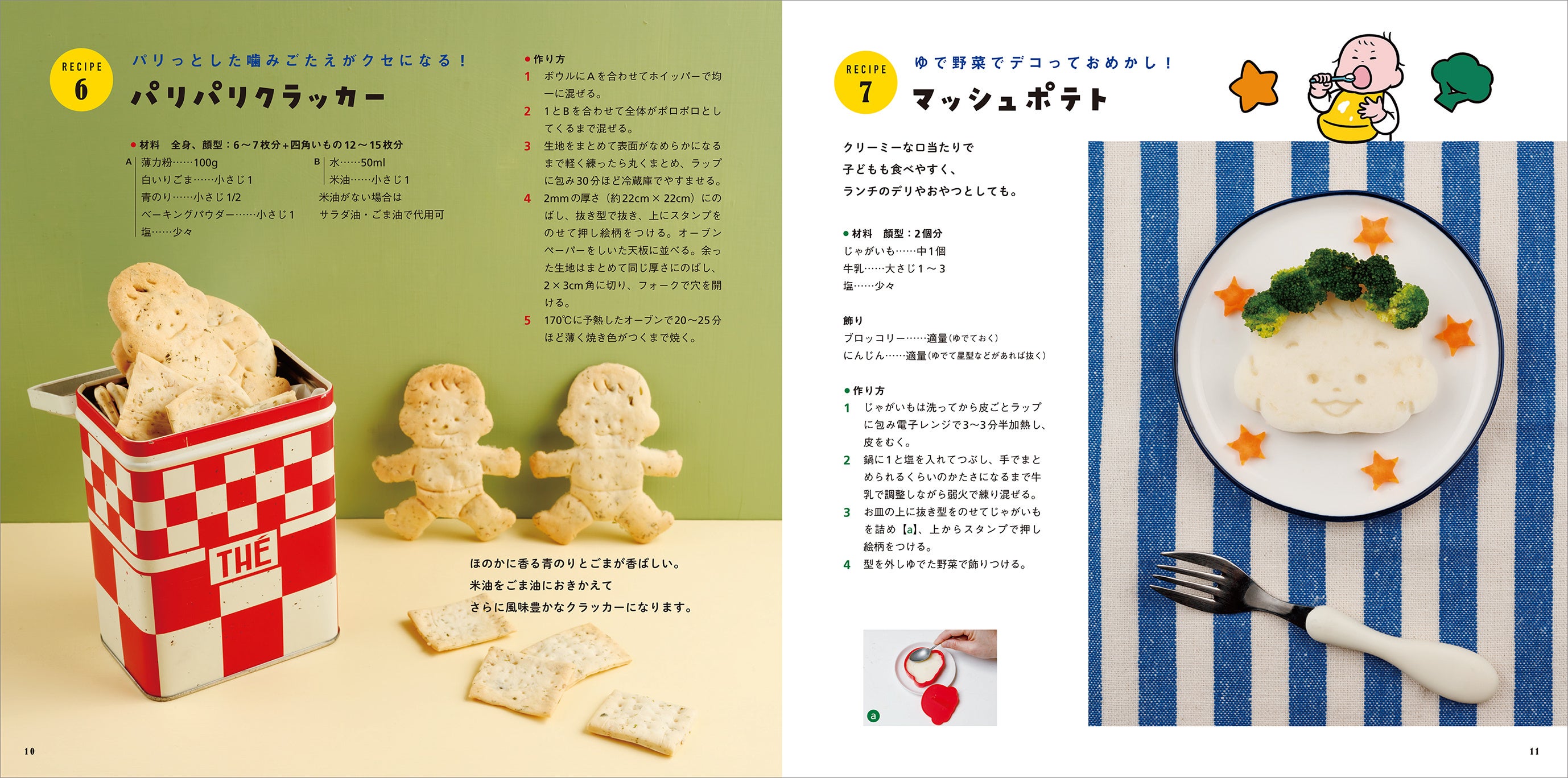 SNSで大人気の絵本作家・おおのたろうさんのあかちゃんイラストがお料理に使える抜き型とスタンプになって登場!かわいいあかちゃん型を使ったレシピも掲載!