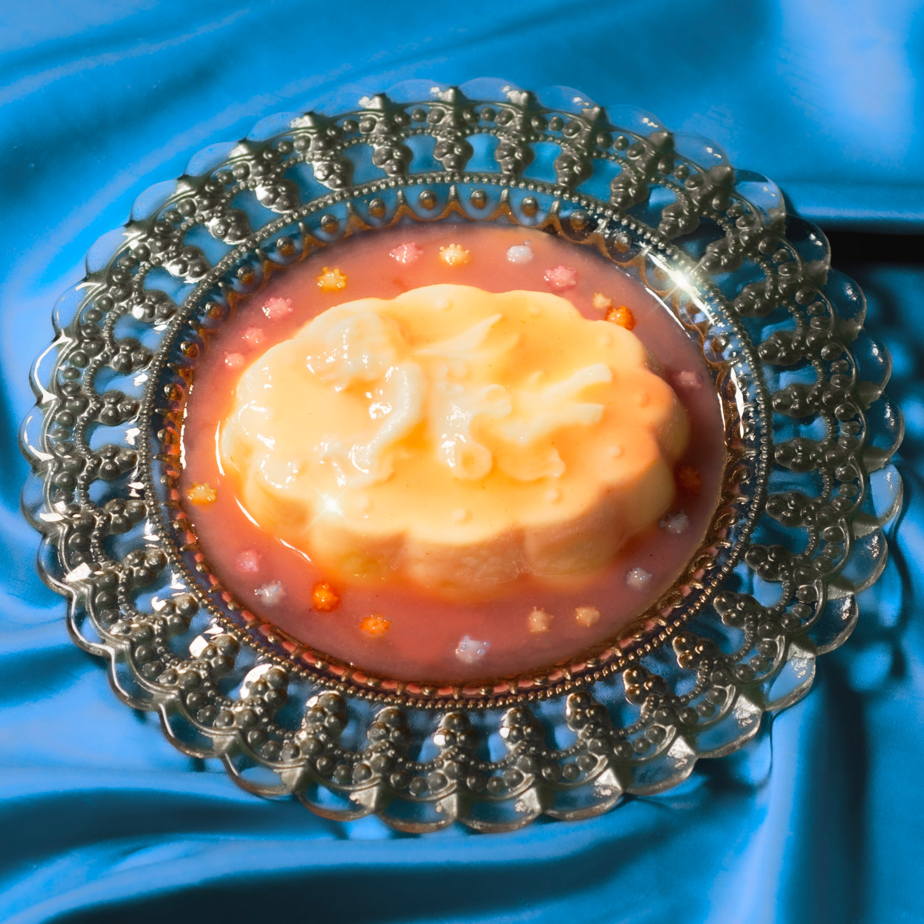 桃のスープに色とりどりのと、“こぼれ星”が浮かんだこの時期だけの、天使のババロア。夢うつつの夏の午後に。