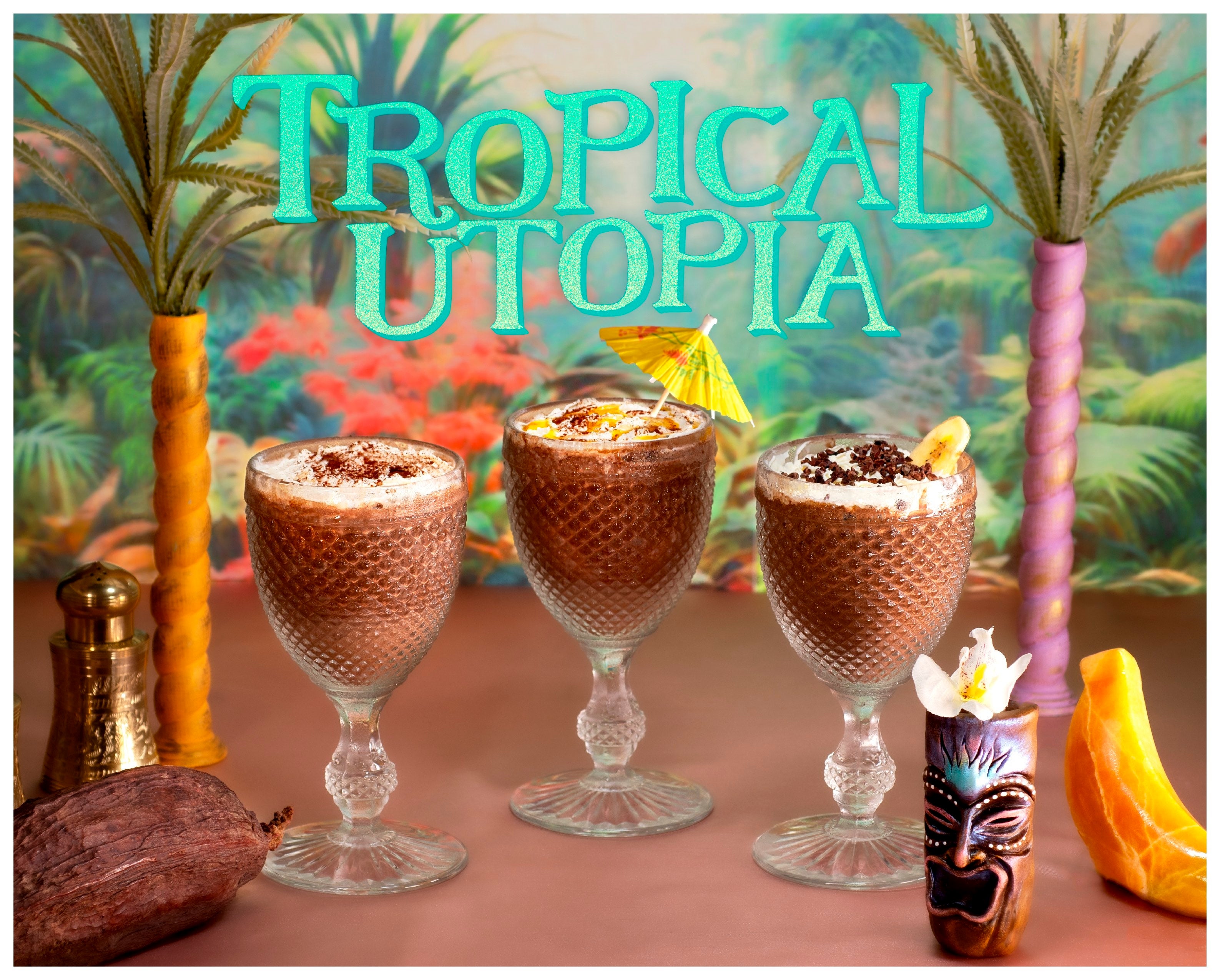熱帯雨林をイメージした、今夏の新しいお味。丸ごと入れたバナナにお塩を少々、隠し味にココアクッキーを細かく砕いて入れた濃厚で滑らかなスムージー。トッピングにはカカオニブを少々…