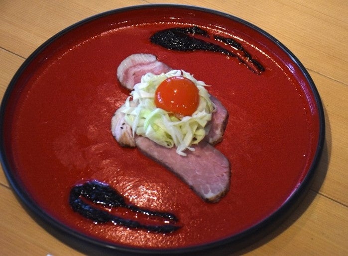 最後は中国四川料理「道」(草間町)。「びっくり回鍋肉」(シェフの気まぐれコース11000円の1品、要予約)は、低温調理でしっとり柔らかくなった田原ポークとキャベツの上に、「イラコファーム」の新商品で鮮やかな黄身が特徴の鶏卵「♯華音」が、ドドンと真ん中に乗った回鍋肉の概念を覆す一品。