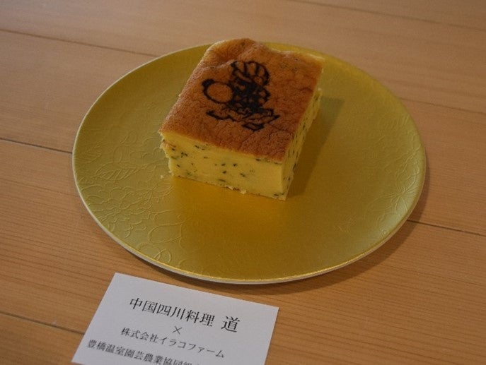 また、豊橋温室園芸農業協同組合大葉部会の大葉を混ぜた「大葉のカステラ」(650円)は、しっとりとした口当たりで甘さ控えめな台湾カステラになっています。「女神のほほえみ」の米粉を使ったグルテンフリーもポイント。同部会は「大葉は食事に使われることがほとんどで、スイーツという発想がかなり斬新でした。農家の中でも『甘いものに大葉は難しいんじゃないか』という声が大きかったが、試作品を食べた農家が『本当においしい』と。 甘さも控えめで老若男女、特にお子さまにも食べてもらえると思う。少子高齢化で子どもが少なくなってる中で、癖の強い大葉をまずはこの食べやすいカステラが入り口になってくれれば嬉しい」と期待しました。「びっくり回鍋肉」は8月1日〜31日、「大葉のカステラ」は7月18日から1日数量限定で提供します。