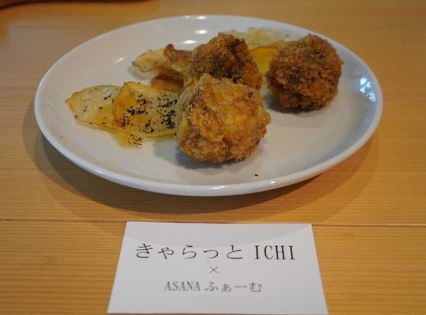 弁当や手羽先を販売する「きゃらっとICHI」(西橋良町)は、「豊橋市住みます芸人」でお笑いコンビのASANAと協力。きゃらっとICHI代表者は、「芸人をやりながら農作物を育てているASANAさんと、飲食店だけど福祉事業所もやっているきゃらっとICHI、お互いに二つのことを同時にやってるということで、通じるものがあるのかなと思って選びました」と、コラボ理由を説明しました。今回は、ASANAが育てたジャガイモで、「ASANAふぁーむのノンフライポテトICHIプス(予定)」と「ASANAふぁーむのキャラット揚がった極コロッケ5種(予定)」(各400円)を用意。コロッケはきゃらっとICHIで販売する手羽先のほぐした身を混ぜたものや、カレー味、青じそ味などを用意しており、「季節に応じて味を変えていきたい」と言います。