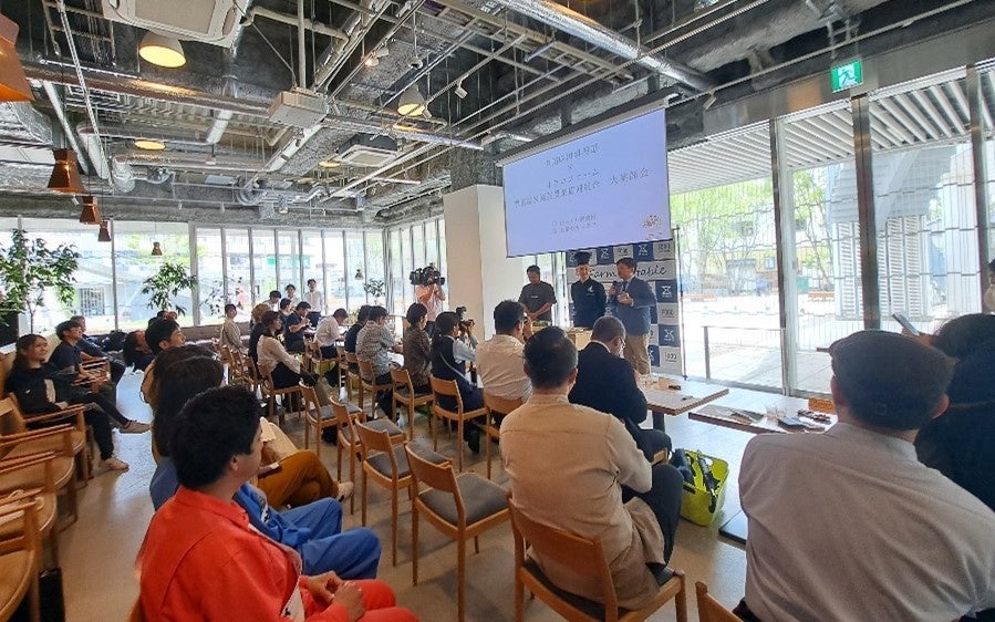 7月16日、マスコミ向けに行われた新メニュー発表会には、6の飲食店・菓子店等と8の生産者が出席。6組のグループがメニュー開発の秘話やこだわりなどを5分間でプレゼンしました。