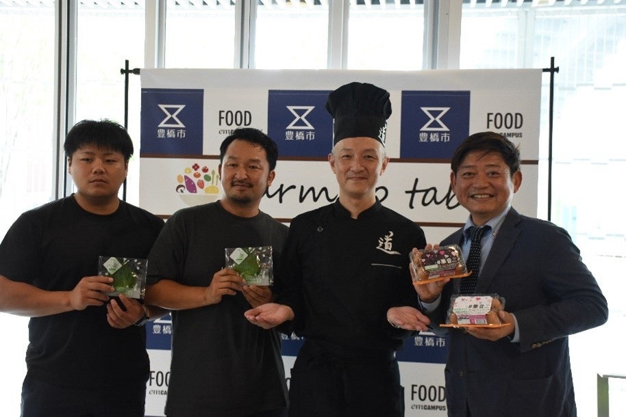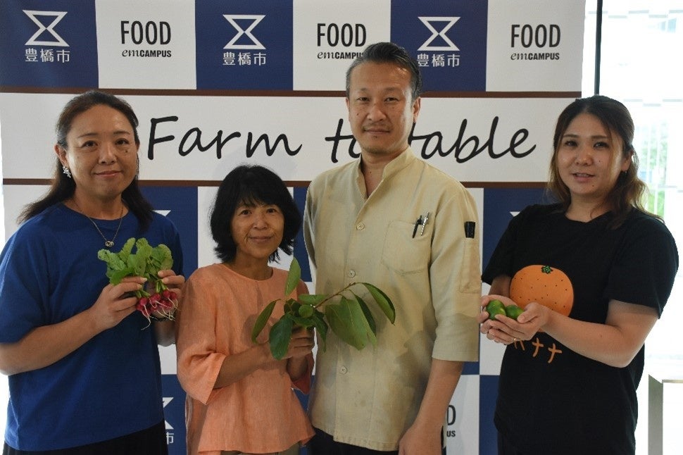 愛知県豊橋市は、地元の地産地消を盛り上げるために生産者と飲食店、菓子店などとのマッチングを行い、メニューを開発しています。2024年7月16日(火)には、豊橋市駅前大通2丁目の複合施設「emCAMPUS EAST」のemCAMPUS FOODで夏の生産物を使った新メニューをマスコミに向けてお披露目。食材の作り手と料理の作り手、双方のプロの手によって新たな魅力が引き出されたメニューがそろいました。各店舗での提供もこの夏、始まります。ぜひ、市内を巡って「農業王国・豊橋」を体感してください!