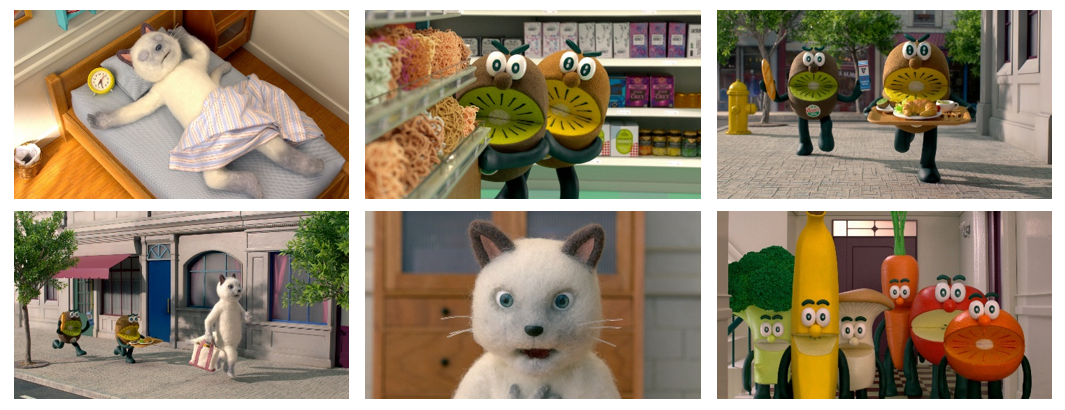 主人公は、忙しい現代人をほうふつとさせる働き盛りの猫ちゃん。仕事にプライベートに忙しく、食事を抜いてしまったり、栄養バランスのことを考えずに食事を選んだり、栄養に関する情報についても興味を示していません。このような「乱れた」食生活を表現するために、このCMでは猫ちゃんが食べているものを「もじゃもじゃ」で表現しています。そんな猫ちゃんの生活を心配したキウイブラザーズ。ありとあらゆる手を使って栄養バランスの大切さについて訴えようとしますが、猫ちゃんは素知らぬ態度。するとある日、キウイブラザーズにとって最も危惧していたことが起こります。幸い、それは夢だったものの、その日をきっかけに思いが通じ、猫ちゃんは栄養バランスについて考えるようになり、キウイブラザーズや他のフルーツや野菜と一緒に健康的な食生活を送るようになります。