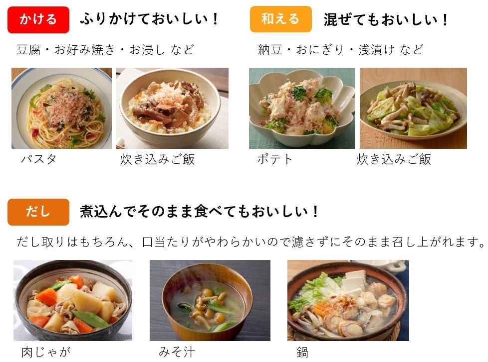 かける、和える、だしに使うなど、毎日のお料理に活躍します。