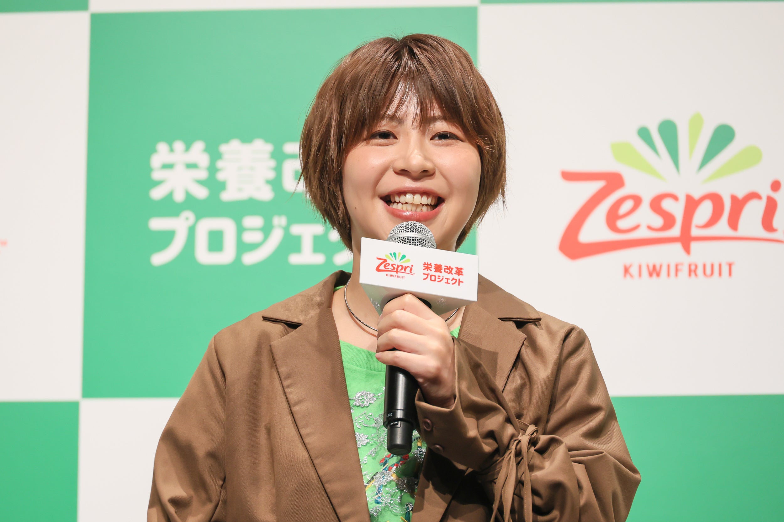 ゼスプリキウイ公式アカウントでは、楽しく手軽に84点くらいを目指す方法を「#84点の食生活」をつけて投稿してもらうキャンペーンを行います。そこで、ゲストの皆さんにも、「#84点の食生活」をフリップに記入していただき、発表しました。ゆうちゃみさん「“体にいいものを少しずつ追加”です。コンビニでも手軽に買えるもので、ちょっとずつ栄養を増やしていきたいです。ちょっとずつ頑張ろうと思います」、ヒコロヒーさん「“豆乳で割る”私は出来が悪いので、できることから始めて、自分なりの84点を目指したいと思います」、加納さん「“出勤キウイ”です。キウイを行きがけに食べようと思います。家で食べるフルーツのハードルが高くなっていると感じますが、コンビニでも手軽に買えるようになっていますし、キウイ1個を行きや帰りに買うでもいいと思います」、くわばたさん「“忙しくても84回噛む”です。この職業をやっていると、2,3回ぐらいしか噛んでないんですね。子ども達と食卓を囲んでゆっくり噛むことを心がけたいと思います」とそれぞれ宣言をしてイベントを締めくくりました。