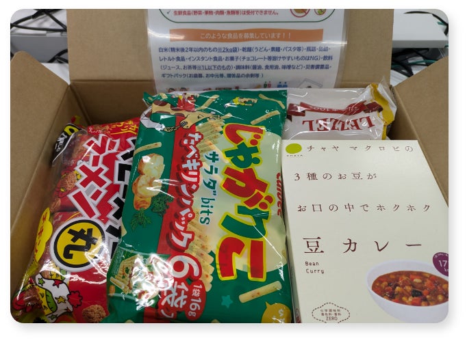 当社は、今後も「子ども達の笑顔のために!地球温暖化を防ぐために!」をスローガンに、困窮するひとり親家庭への食品支援を行うとともに、地球温暖化対策の一環として「社内フードドライブ活動」を継続し、2024年9月、2024年12月、2025年3月に寄付を予定しています。