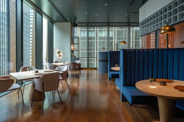 “日本のテロワール”をテーマにしたメインフロアは、ソムリエが厳選した約50種類のワインが揃います。合わせるフードには〈THE UPPER〉パートナーシェフ、大阪La Cime高田裕介氏の原点、フランス“ブラッスリーメニュー”に加え、イベント限定フードを提供。