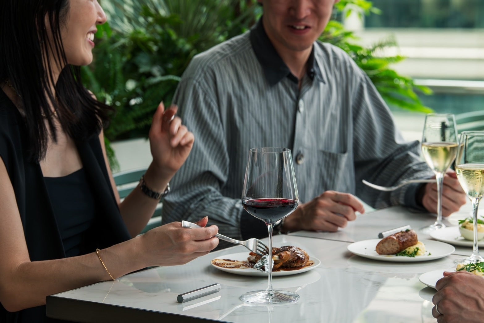 対する下層フロアでは、お料理とワインをゆっくり堪能したい方へ向けたプレミアムシートをご用意。各国の多彩なワインに造詣が深いソムリエの接客サービスが付きワンランク上の体験が叶います。さらに、ご自宅でもお愉しみいただけるようお土産としてミニボトルワインをプレゼント。