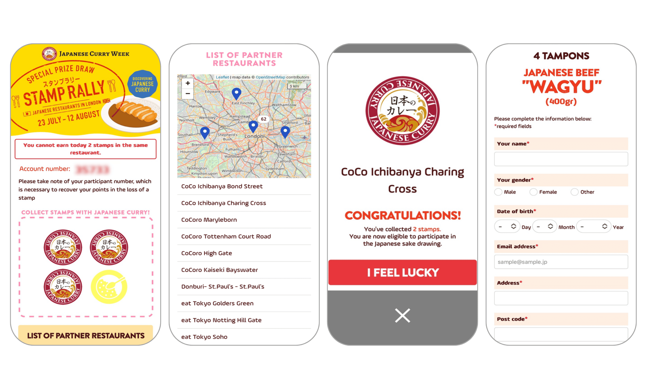 1回目のデジタルスタンプラリーは、日本のカレーを提供しているレストランに協力いただき、2年前に40店舗の規模で実施しました。ロンドンの方は、スタンプラリーを知りませんでしたが、初めてでもとても楽しんでくれました。