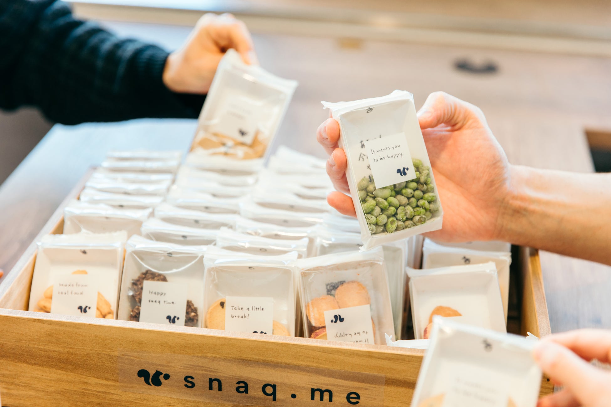 現在では個人のお客様にご利用いただくおやつの定期便「snaq.me」を主力事業にしておりますが、「職場でもスナックミーの商品を楽しみたい」といったお問い合わせをいただいたことをきっかけにオフィス/法人様向けサービス「snaq.me office」を開始、運営しています。