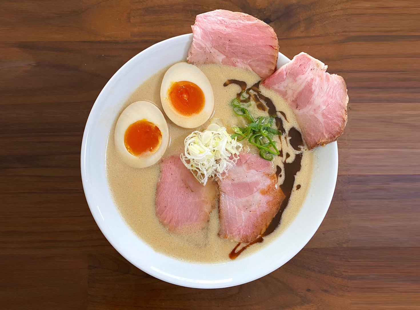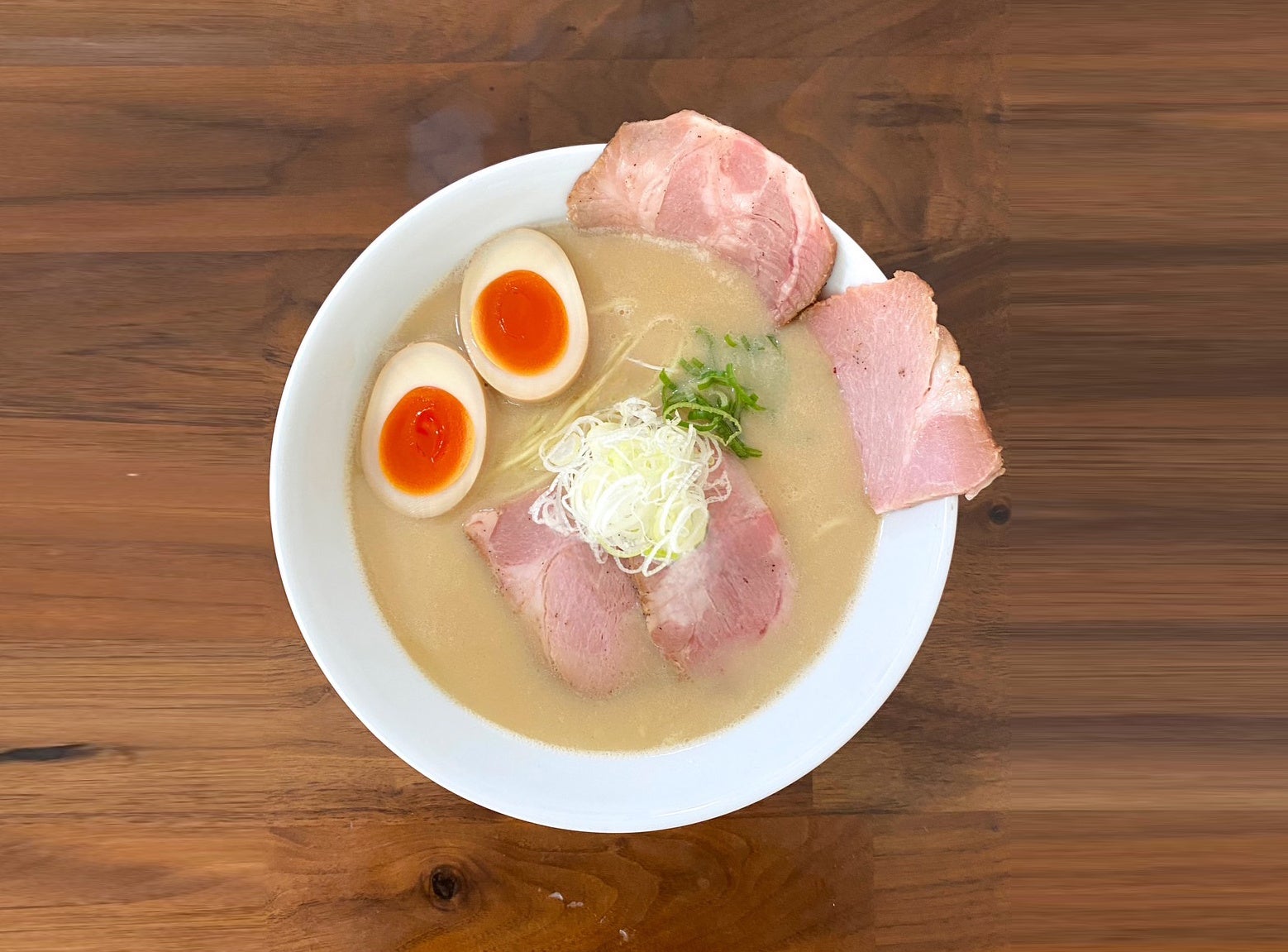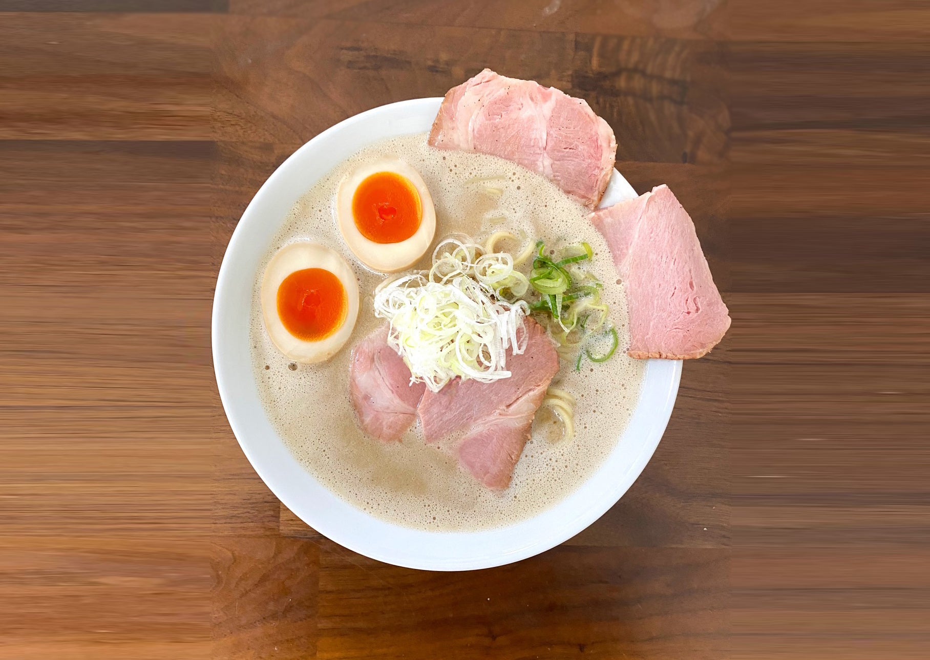 臭みのないクリーミーかつマイルドな豚骨白湯スープと独自製法で抽出したかつおのコクが食欲をそそる味わい深い一杯です。