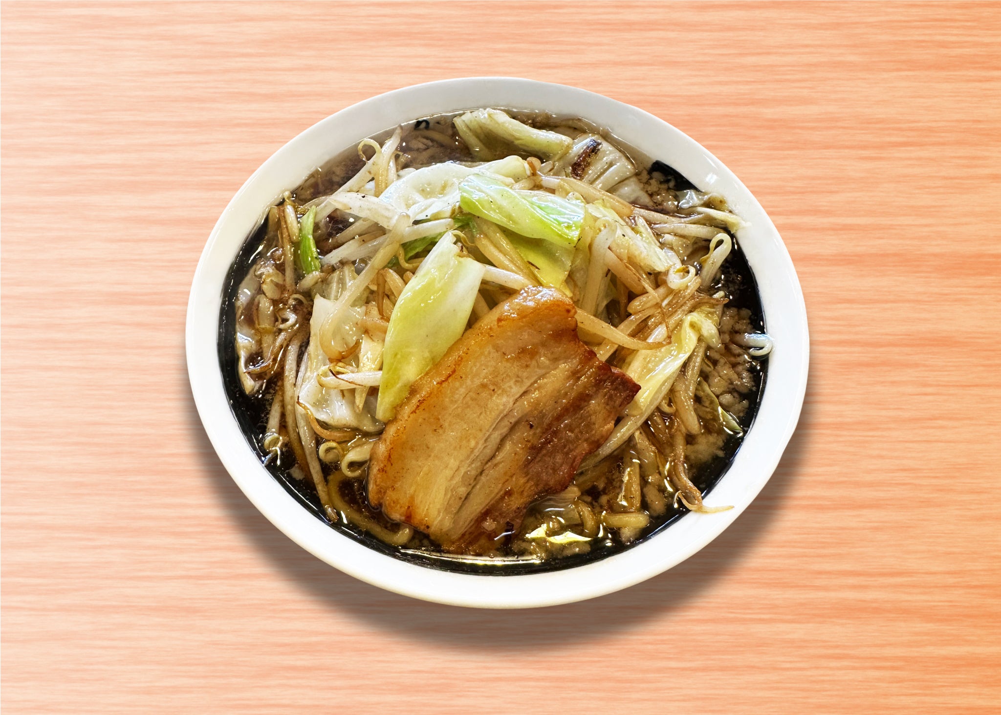 製麺屋の営業マンとして15年勤めた麺のプロともいえる店主がついに辿り着いた、丸い状態で切り平打ちにして作られる究極の多加水麺を使用した看板メニュー「男の根性黒醤油ラーメン」をここラーメンステーションにてご堪能ください。