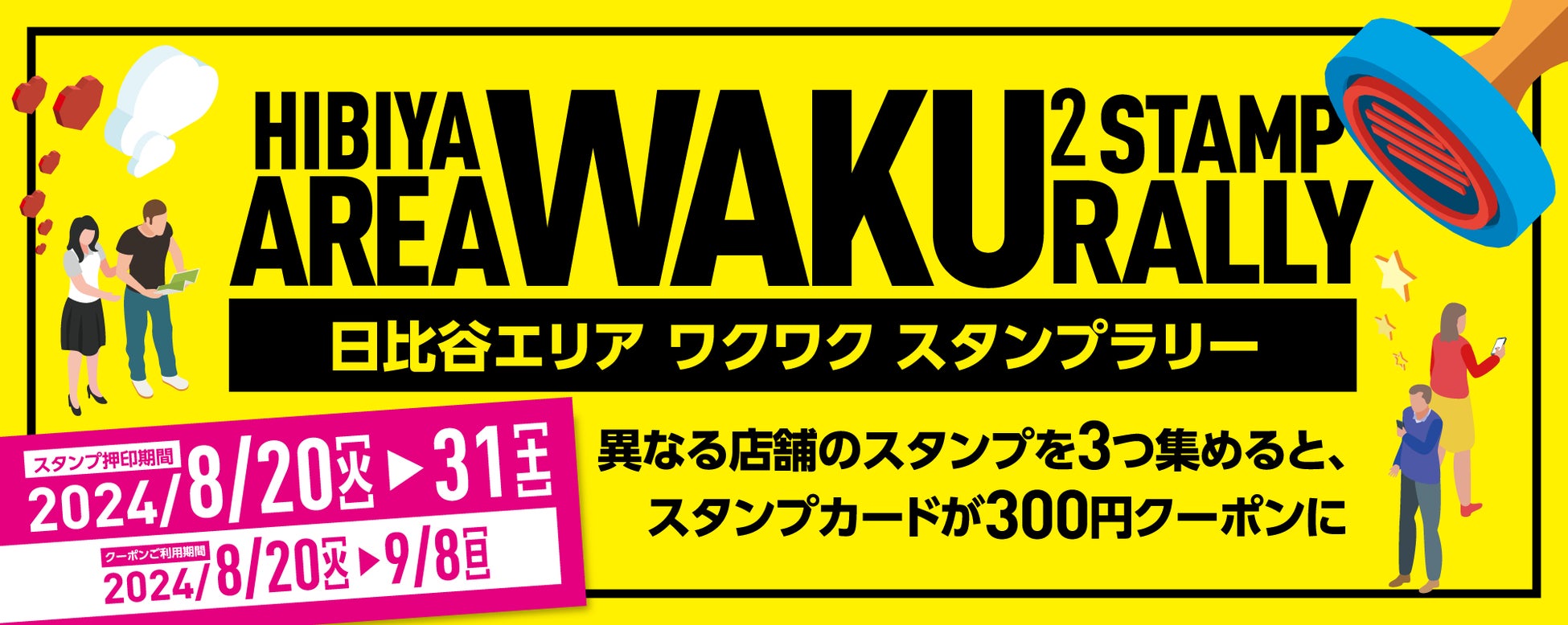 日比谷エリアで、異なる店舗のスタンプを3つ集めるとスタンプカードが300円クーポンとして使えるキャンペーン「日比谷エリアワクワクスタンプラリー」を、2024年8月20日(火)〜31日(土)の期間開催します。