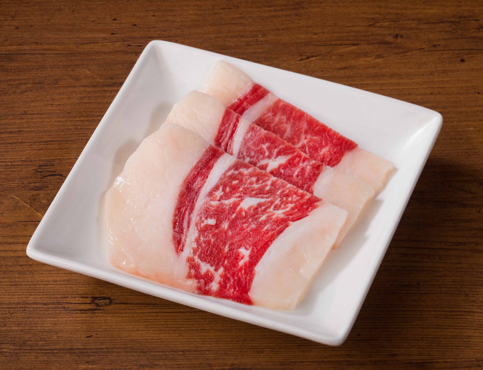 【食感…5】噛めば噛むほどに肉の旨みがじゅわ〜っと広がるのが特徴。赤身と脂身が半々くらいで脂身にはコラーゲンが豊富に含まれています。加熱するとゼラチン質に変わり、口の中でトロトロとコリコリの食感を交互に楽しめます。牛肉好きのみなさんにもきっと納得いただけるはず。