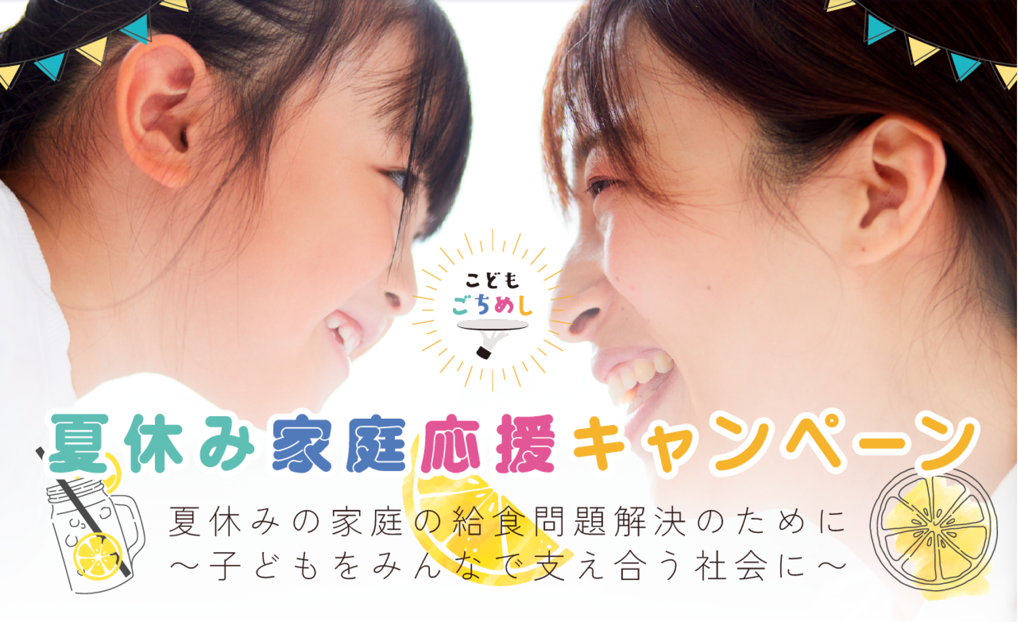 「夏休み家庭応援キャンペーン」は、夏休み期間中に給食がないことで起こっている問題の解決に少しでも寄与したいと実施するものです。物価高が追い打ちをかけ、食事の準備が満足にできないことで、栄養が偏りがちになったり、給食がなくなることで空腹を抱えるなど深刻な状況に置かれるこどもは少なくないと言われています。加えて、通学機会がなくなることで、日中に涼しい場所で過ごせる環境の確保が難しくなり、子どもたちの健康や安全が脅かされる可能性も指摘されています。