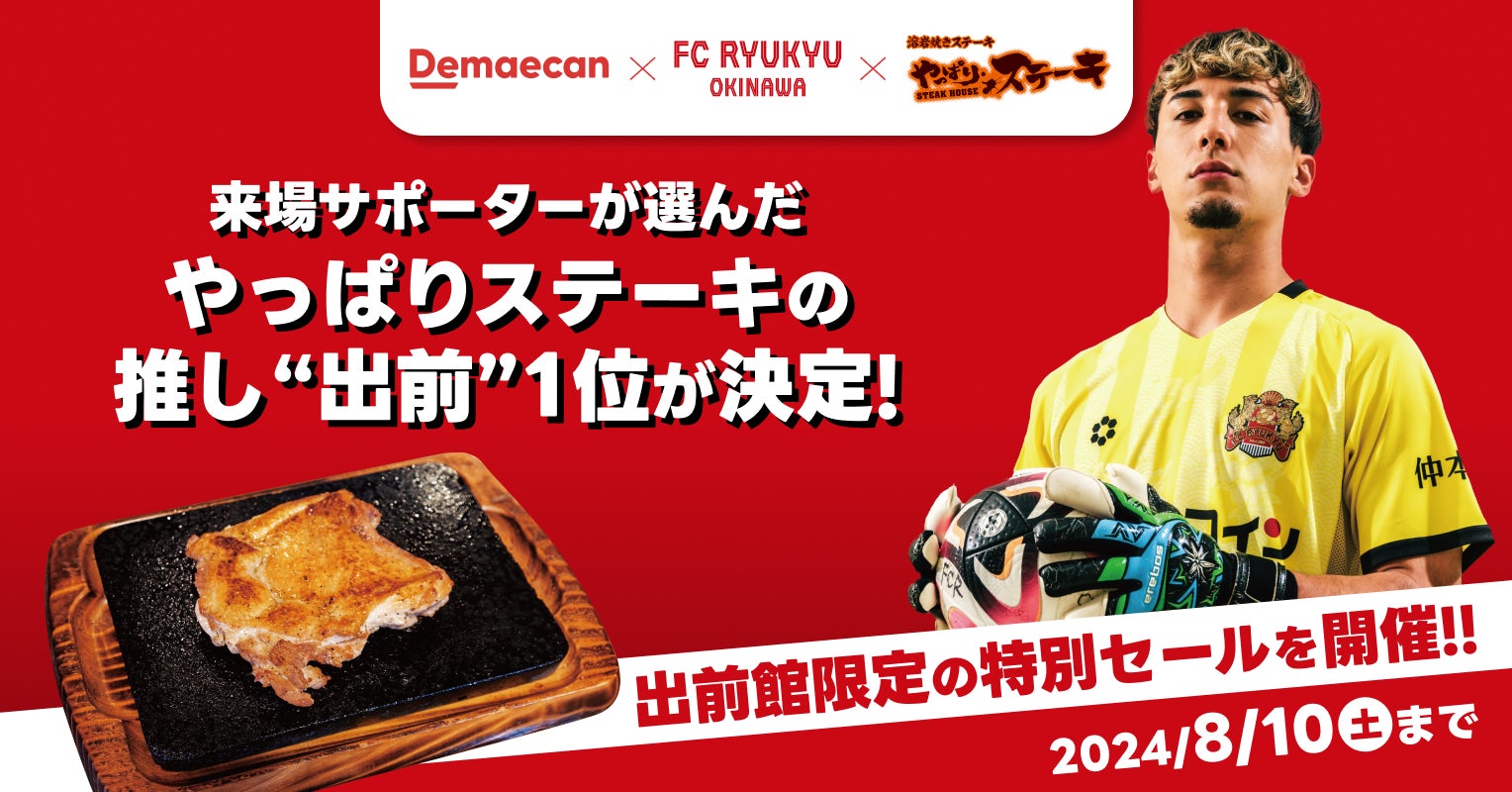 出前館(運営:株式会社出前館)、FC琉球(琉球フットボールクラブ株式会社)、やっぱりステーキ(運営:株式会社ディーズプランニング)は、2024年7月21日(日)のFC琉球ホームゲームにおいて、初となるコラボ企画「来場サポーターが選ぶ!推し“出前”決定戦 〜やっぱりステーキ編〜」を実施いたしました。
