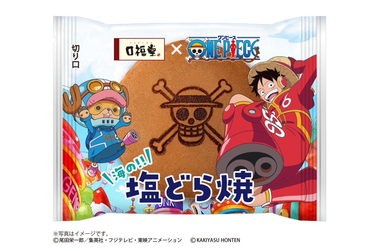 『塩どら焼』は“口福堂の夏の風物詩”として登場する季節限定商品です。この度のコラボレーションを記念して、主人公のルフィが海賊王を目指して大海原に乗り出す『ONE PIECE』の世界観を表現いたしました。