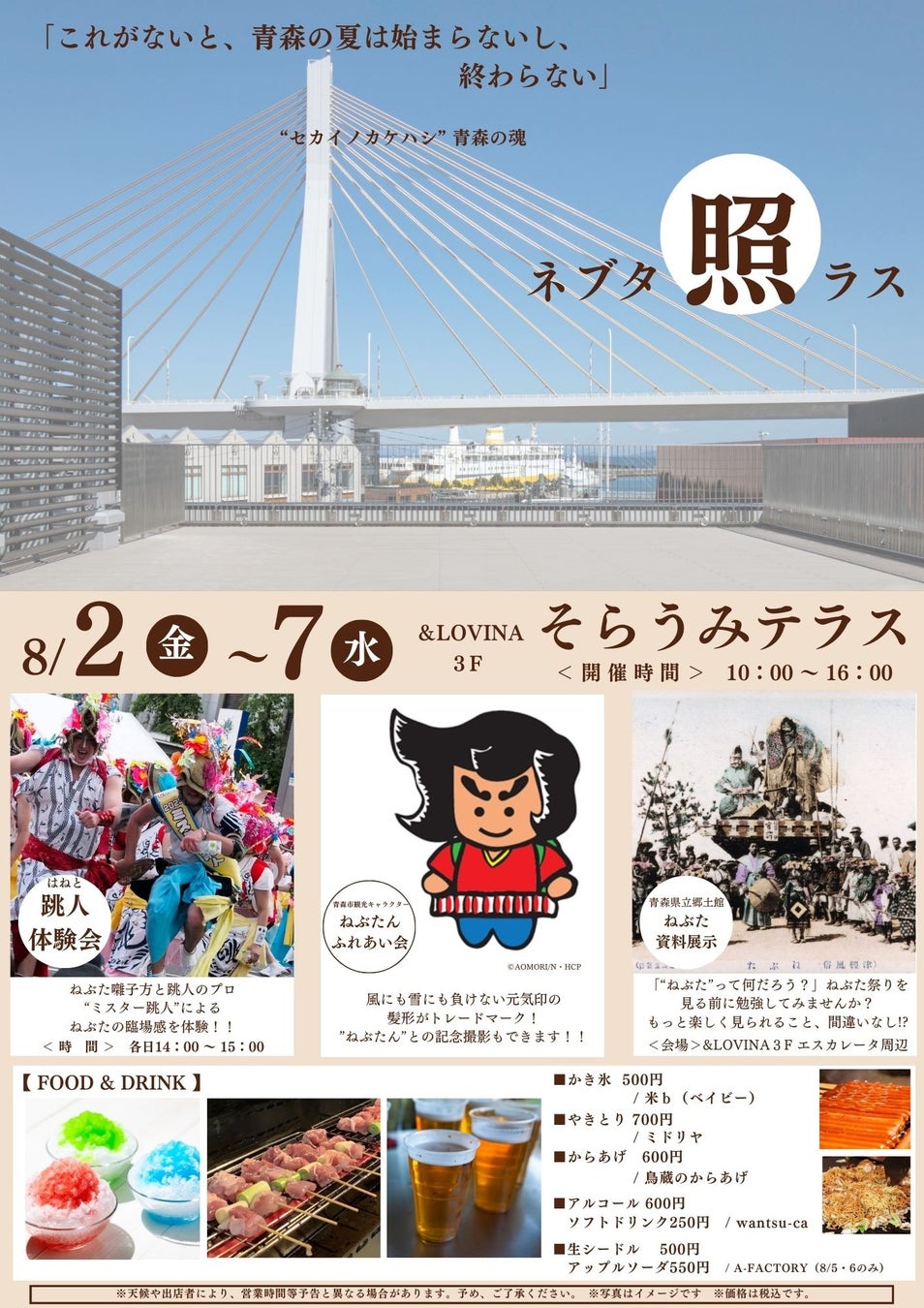 2024年8月2日(金)から8月7日(水)まで、&LOVINA3F「そらうみテラス」にて「ねぶた照ラス」イベントを開催いたします。