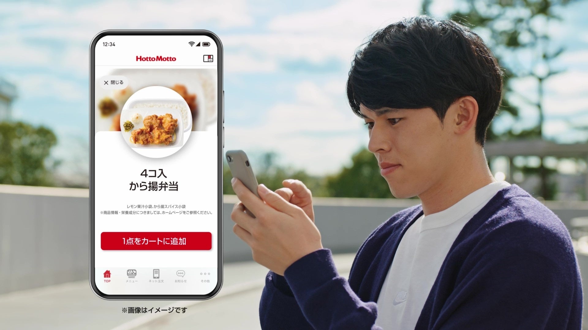 冒頭は「HOT MORE!」のリズムでテンポよく、佐々木選手の投球シーンと、から揚弁当の調理シーンが印象的に描かれます。後半は前半のユニフォーム姿とは雰囲気も異なり、オフをイメージした私服姿の佐々木選手がネット注文を行い、店舗にお弁当をとりに行く様子を描くことで、便利なネット注文を訴求しました。