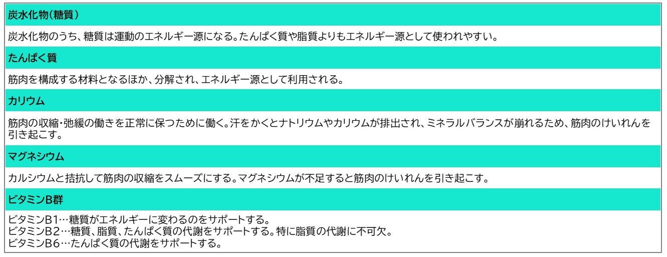 カリウムとマグネシウムは健康な方であれば不足することはありませんが、どちらも汗とともに失われやすく、特にカリウムは運動時など大量に発汗がある時は、意識的に摂取したいミネラルです。