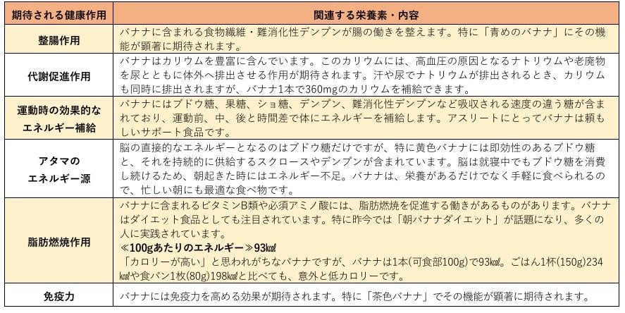 【バナナの健康作用と栄養素】
