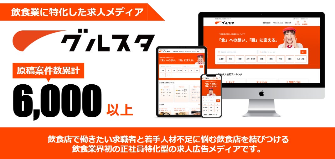 株式会社グルスタが運営する業界初(※注1)”飲食業の正社員特化”転職求人サイト「グルスタ」が