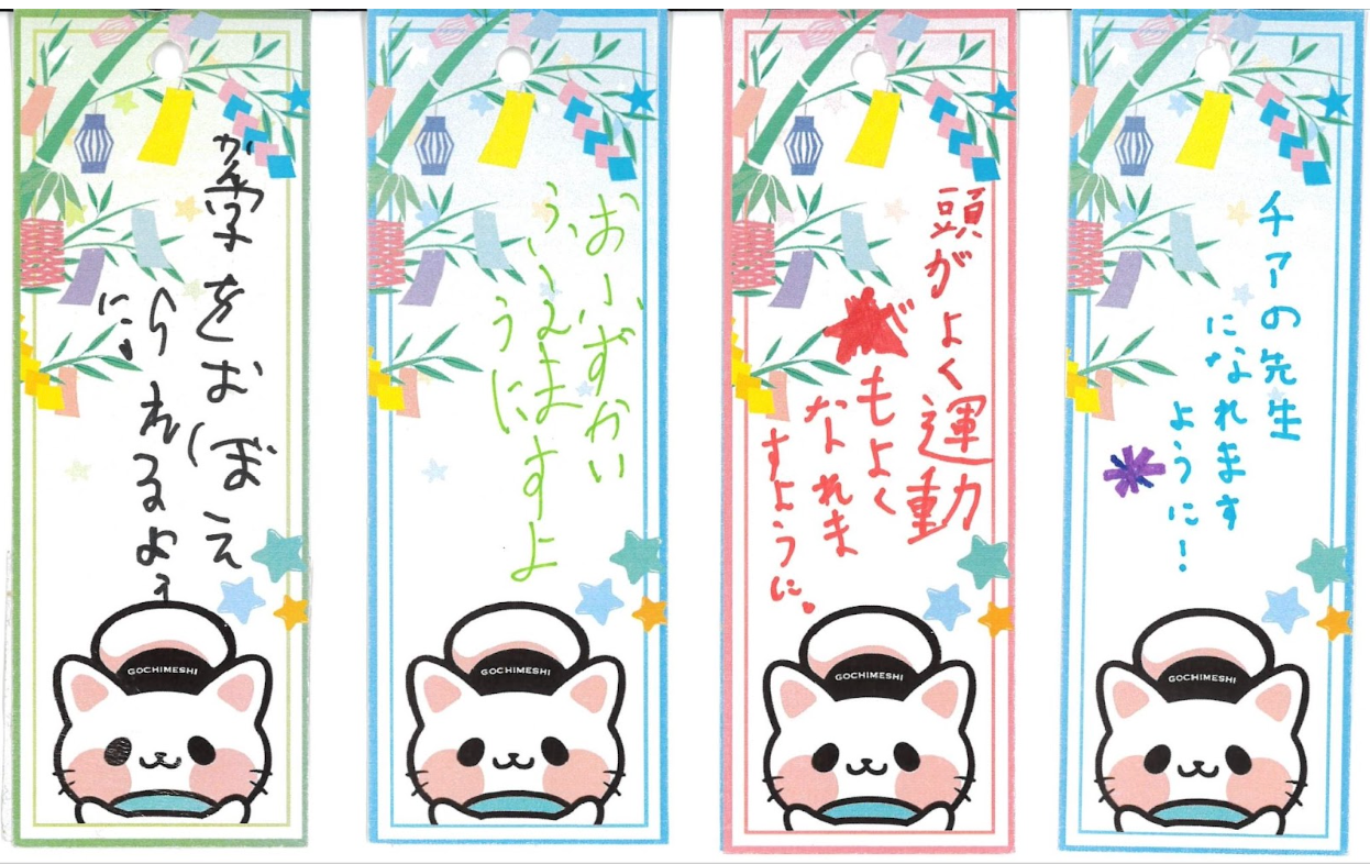 まずは、お子さんたちに七夕の短冊に願いを書いてもらいました。会場に設置された笹には、色とりどりのたくさんの願いや夢が飾られました。みなさんの願いが叶いますように。
