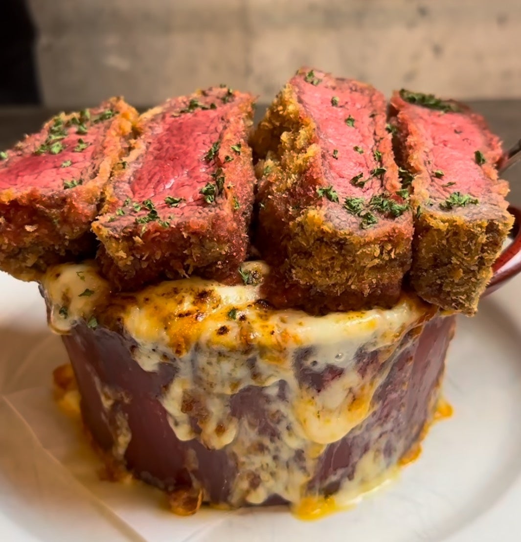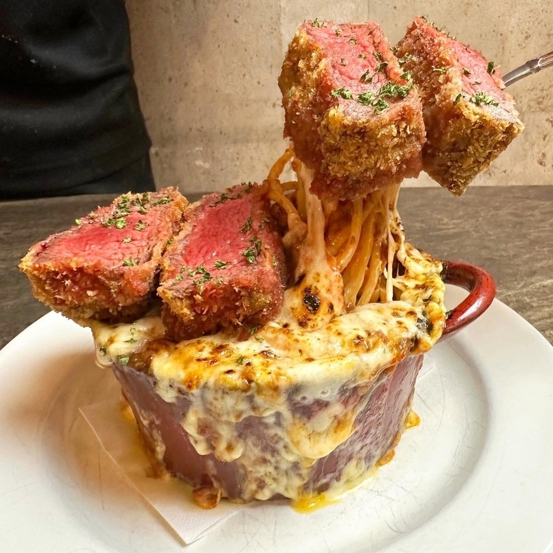 【肉厚で極レア】SNS映え必須…と話題沸騰中の牛レアカツの(溶岩パスタ)とは?!