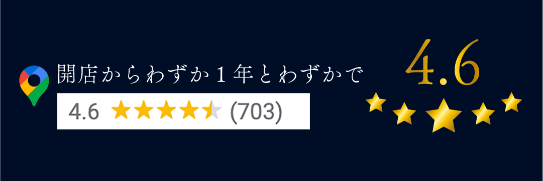 昨年2023年6月3日にGrandOpenして以来、おかげさまで、Google口コミは700件を越え