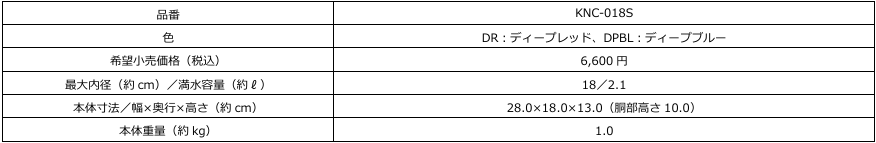 『サーモス セラプロテクトシリーズ マルチポットKNC(KNC-018S)』 仕様一覧