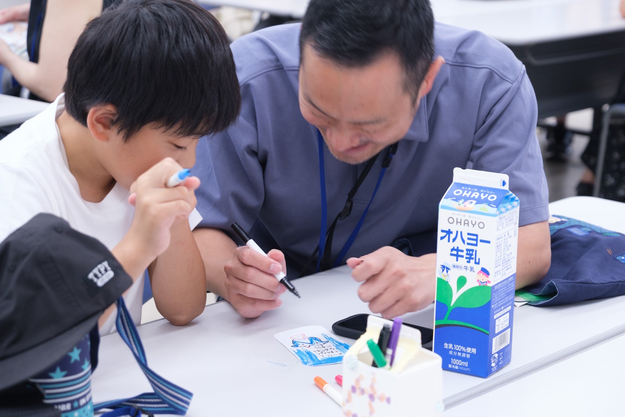 子どもたちには、牛乳に関連する仕事体験を通じて、生産者から消費者に商品が届けられるまでの過程と、労働(仕事体験)の対価(模擬通貨O-HA)を受け取るという、モノとお金の流れを楽しみながら学んでいただきました。