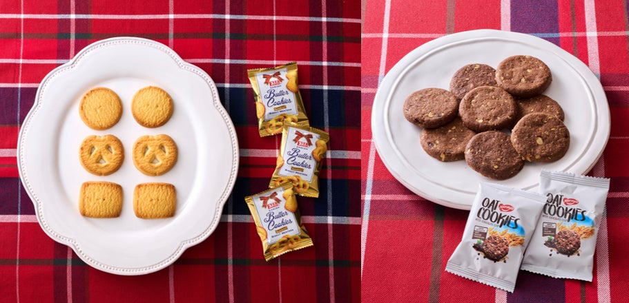 3種の異なる形をアソートにした「バタークッキー」と、オーツ麦の香ばしさとほんのり甘いチョコチップの組み合わせが楽しめる「オーツチョコチップクッキー」を発売いたします。