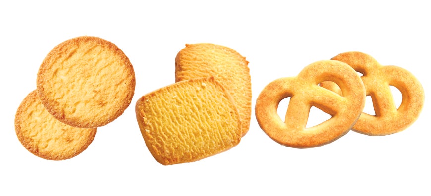 「バタークッキー」はベーシックなデニッシュクッキー。バターの香ばしいおいしさとさっくりと軽い食感が特徴です。形状が異なる3種のアソートになっており見た目も楽しめます。