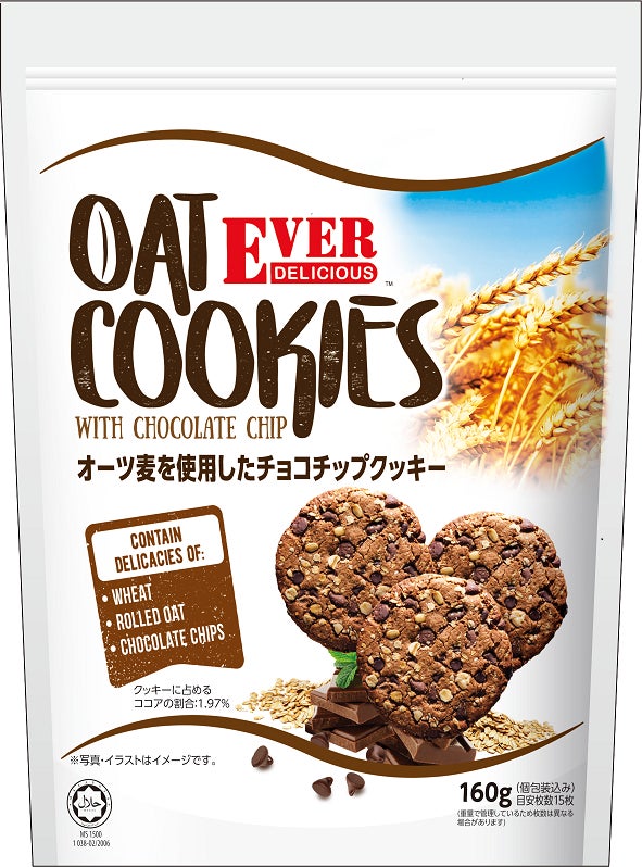 商品特徴:オーツ麦の香ばしさとほんのり甘いチョコチップの組み合わせ。ザクザク食感をしっかり味わえるひとくちサイズのクッキーです。便利な個包装。
