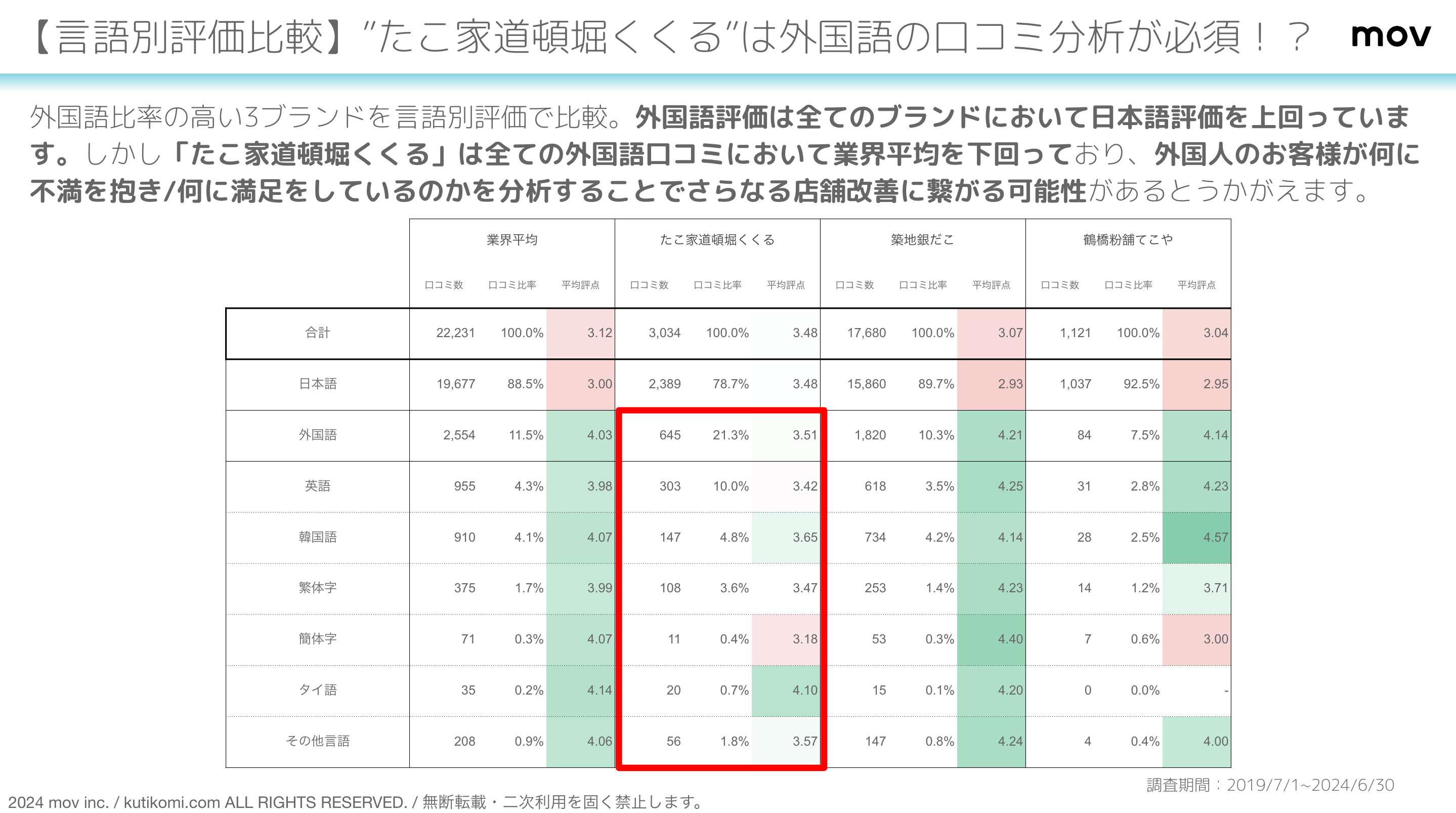 口コミ数/評価から外国語口コミ比率、各ブランドの強み/弱みまでを徹底分析!