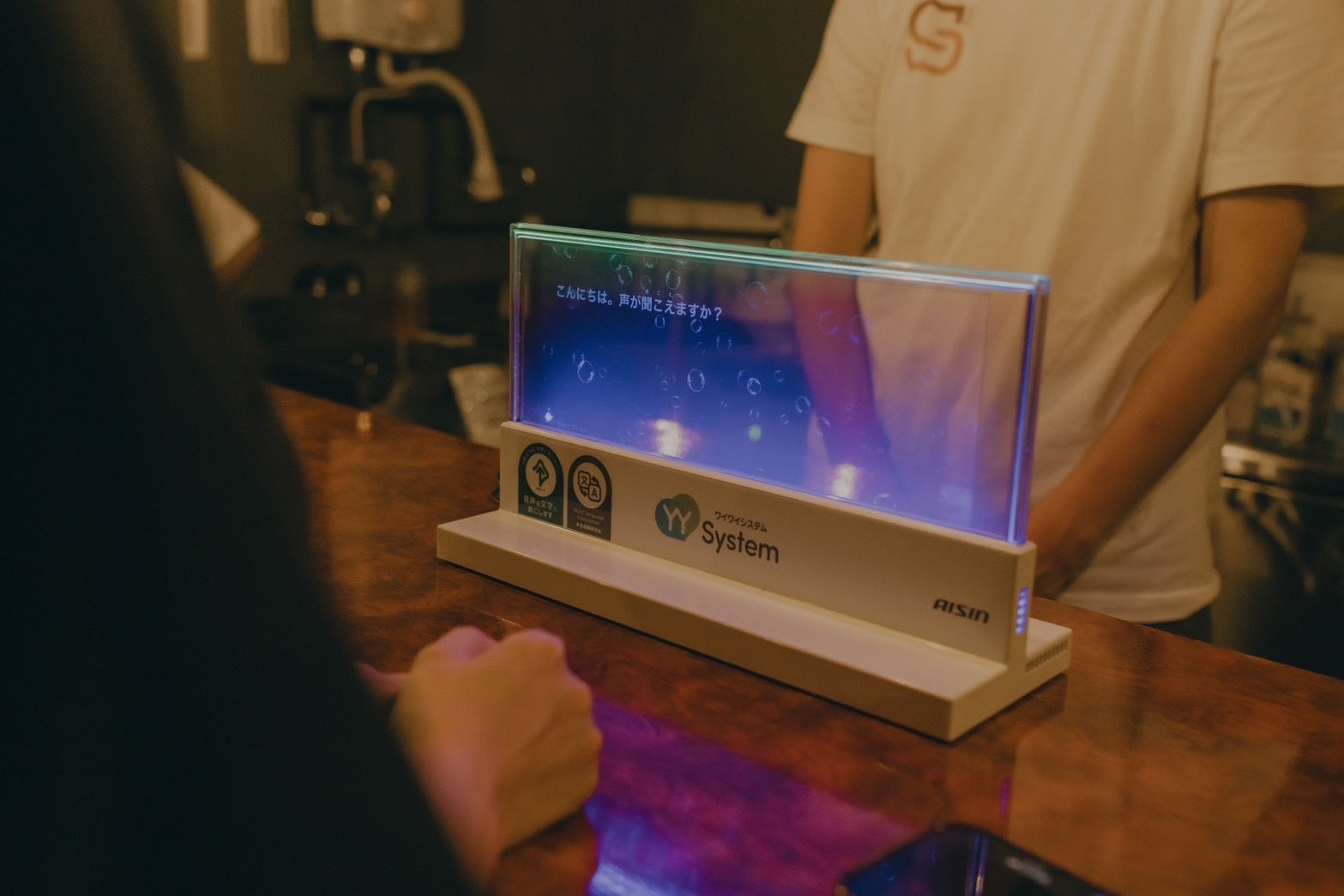 8月10日オープン予定のSHOJOカフェ&バーは、デジタルを通じてコミュニケーションをはかるカフェバーです。店内には、株式会社アイシンさまの手がける「YY文字おこし」のツールと、それをカウンター越しに見える化する透明ディスプレイを設置。カフェバーといった、誰もが入りやすい空間で、