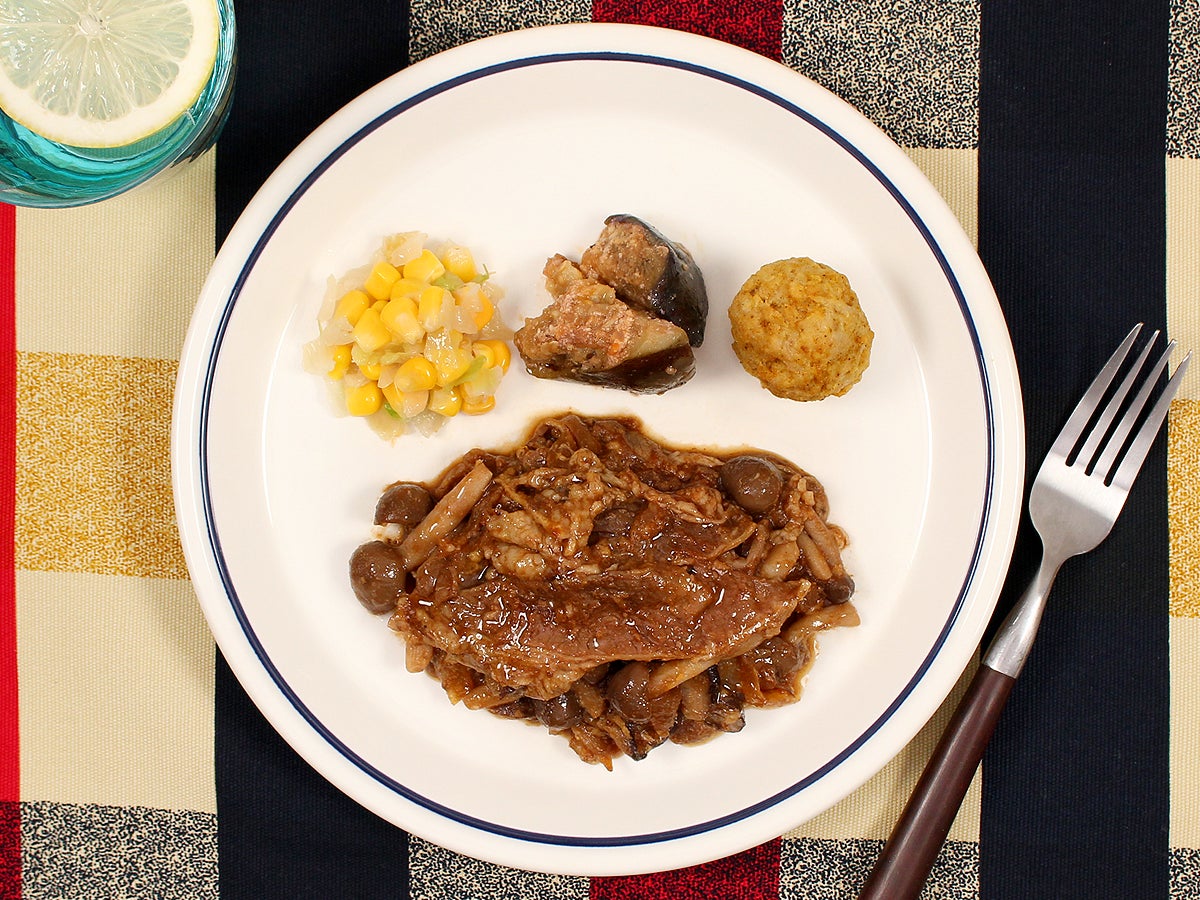 きのこと玉ねぎの旨みで、美味しさアップ!定番商品の牛肉のデミグラスソースの美味しさはそのままに、ソースと具材のバランスを見直すことで、さらにコクと風味をお楽しみいただけるように改良いたしました!しっかりと混ぜて食べていただくのがおすすめです。