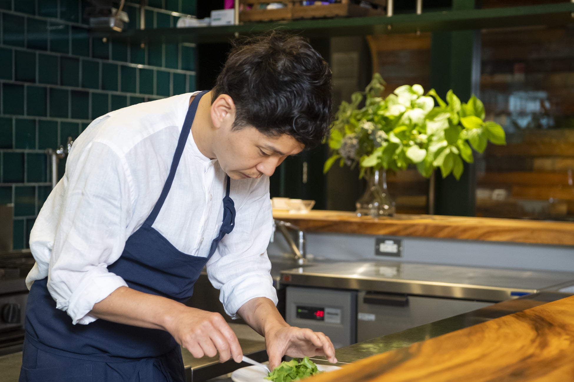 NiNiの新しいスタイルは、オープンキッチンで供する、和と洋、様々な要素を柔軟に取り入れた料理。