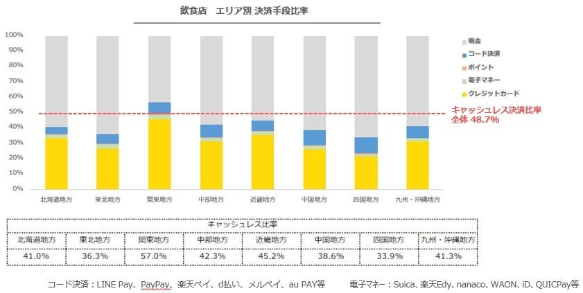 すべての地域で、キャッシュレス比率は30%を超えている。