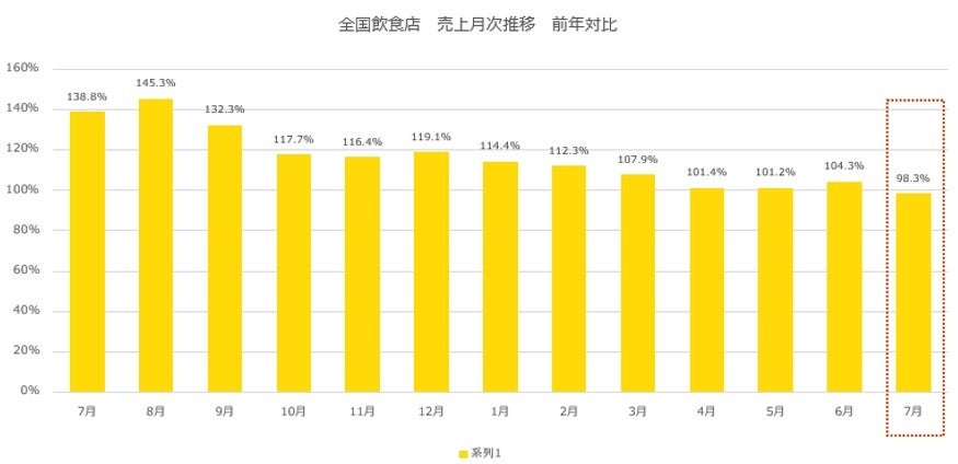 7月度売上は前年対比98.3%と約2年半ぶりに100%を切る