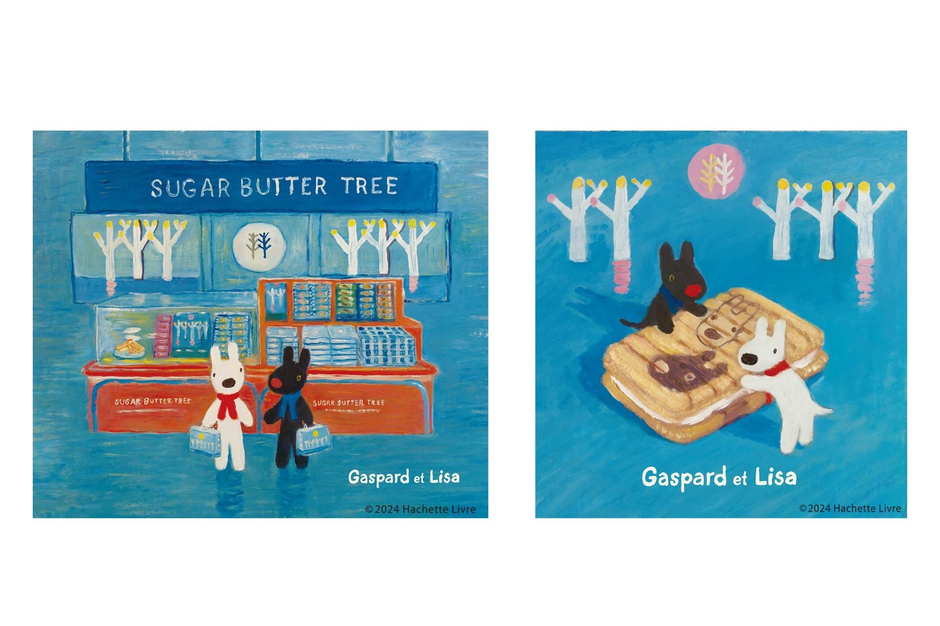壁紙のデザインには、シュガーバターのお店にいった「リサとガスパール」や、夢のように大きいシュガーバターの木を囲む「リサとガスパール」を描いたアートを使用しています。「シュガーバターの木」コラボのためだけに、パリに住む「リサとガスパール」原作者ゲオルグ・ハレンスレーベン氏によって描き下ろしてもらった、ここでしかみられないスペシャルアートです!16個入の詰合せ缶やショッパーバッグに描かれていたアートをスマートフォン壁紙として、いつでもどこでもお楽しみいただけます。