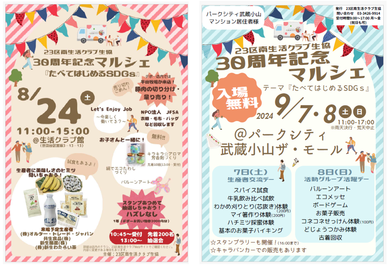 ●2024年8月24日(土)生活クラブ館(世田谷区宮坂) ●2024年9月7日(土)8日(日)パークシティ武蔵小山ザモール(品川区小山)