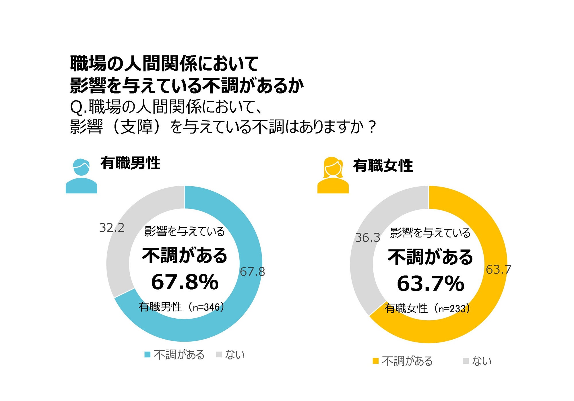 働く若年層の65%が、職場の人間関係において影響を与えている不調があると感じている