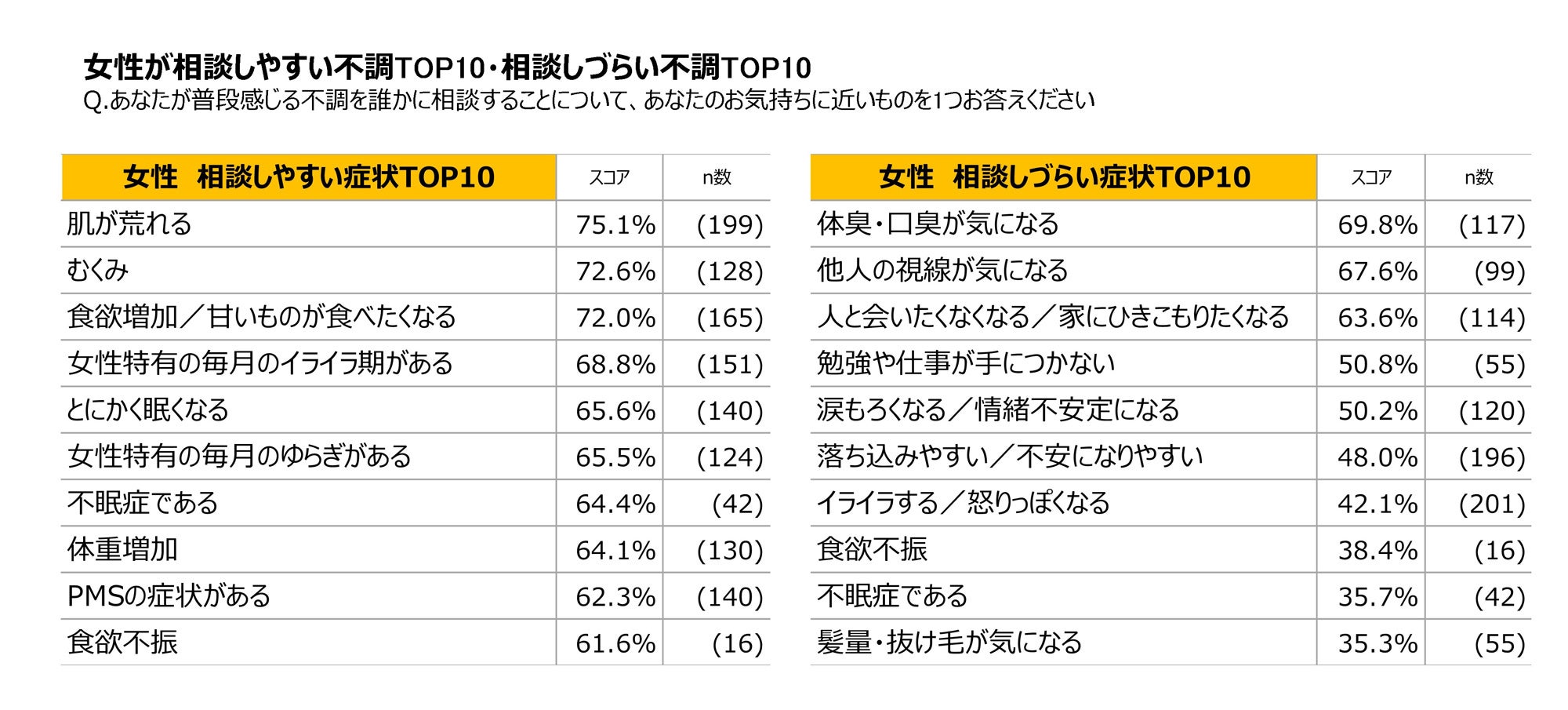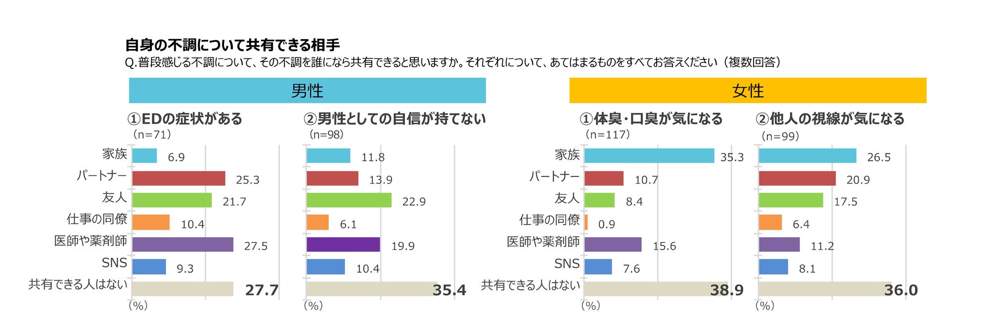 相談しづらい不調の相談相手、男女とも「共有できる人はいない」が多い