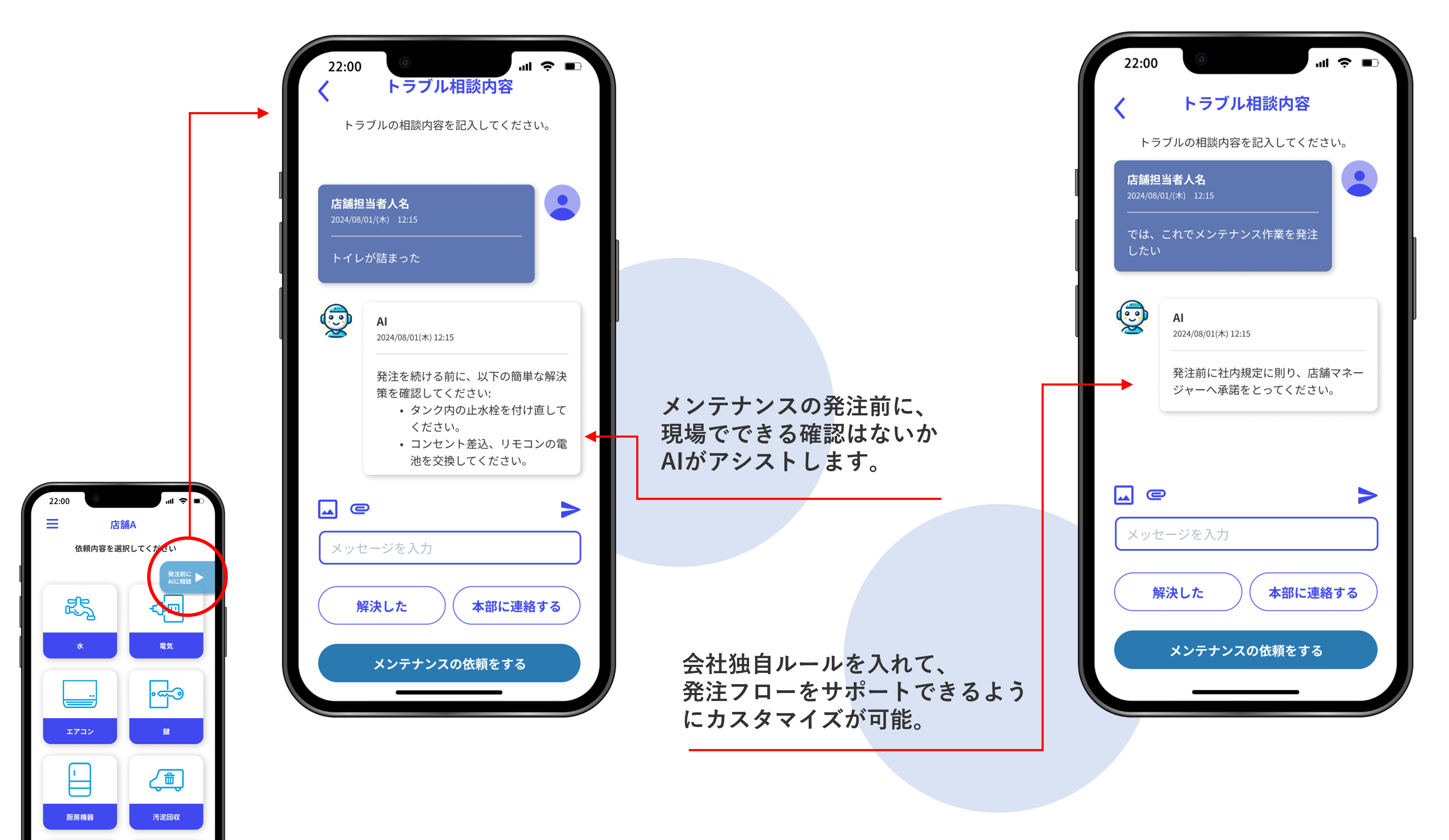 1.メンテナンスの発注前に、現場でできる確認はないかAIに聞くことでアシスト