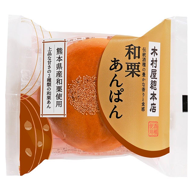 渋皮入りと黄色の2種類の和栗あんを、こだわりの酒種配合生地で包みけしの実をトッピングしました。(熊本県産和栗使用)